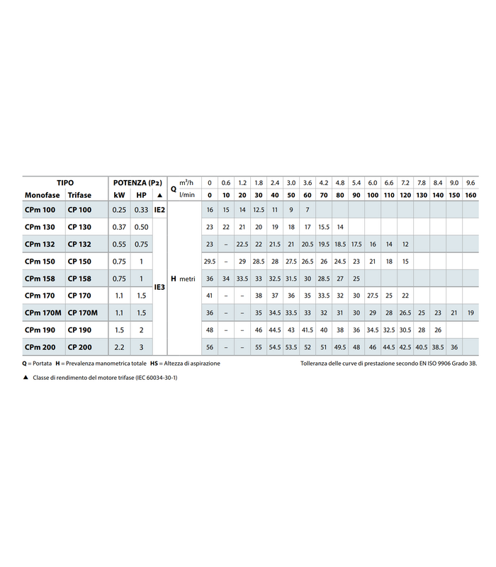 Portata fino a 160 l/min (9,6 m³/h)