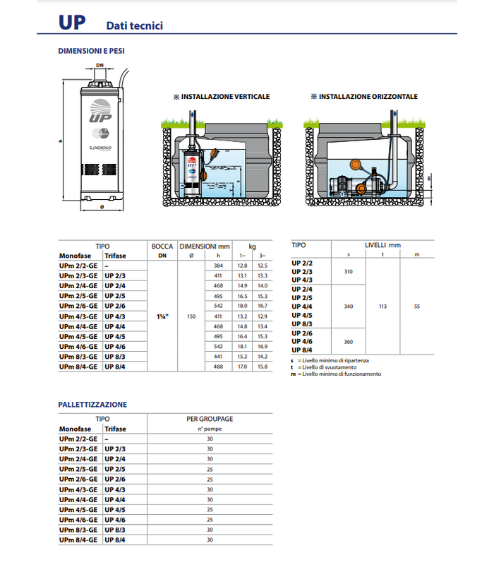 MODELLO MONOFASE SENZA GALLEGGIANTE