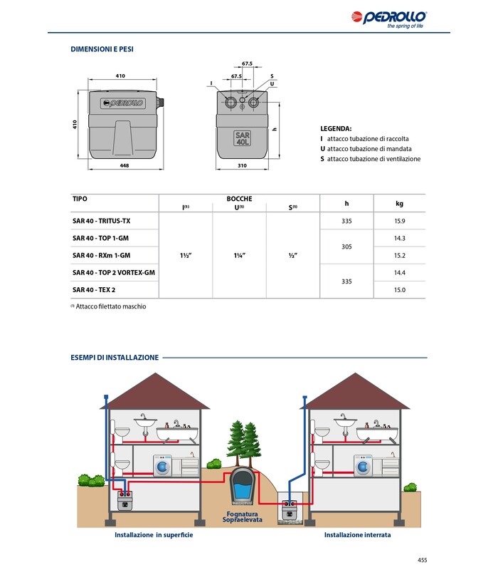 Le stazioni di accumulo e sollevamento SAR 40 sono indicate per la raccolta e il sollevamento di acque chiare, grigie e piovane provenienti da scarichi domestici come lavatrici, lavastoviglie e lavabi, dove la rete fognaria risulta eccessivamente distante o non raggiungibile per gravità.