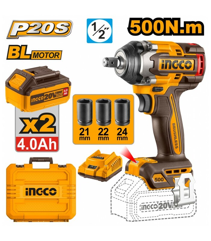 AVVITATORE AD IMPULSI 500Nm CON 2 BATTERIE E VALIGETTA INGCO