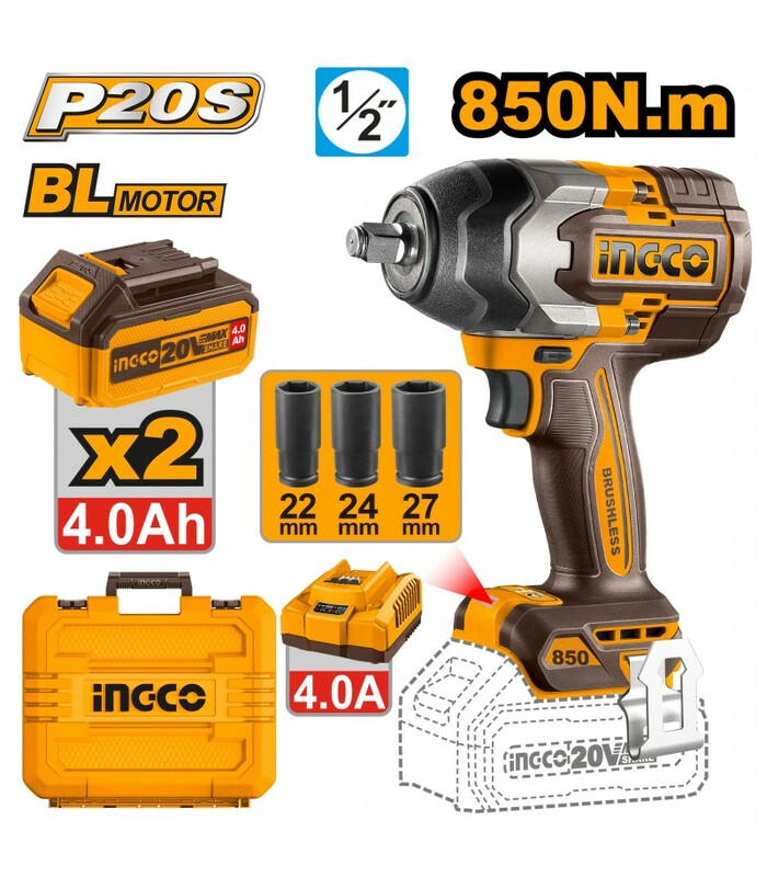 MARTELLO DEMOLITORE BATTERIA 20V BRUSHLESS + 3 PUNTE INGCO