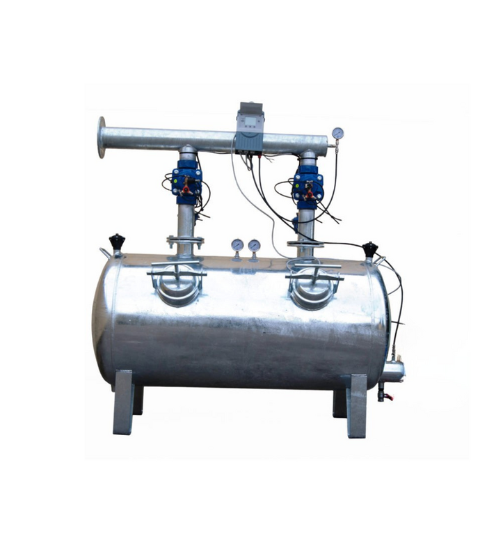 FILTRO A QUARZITE DOPPIA CAMERA IN ACCIAIO ZINCATO A CALDO CON DIFFUSORI FILTRANTI A DISCHI, CON KIT PER CONTROLAVAGGIO