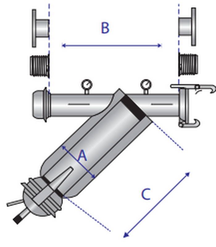 Il filtro è corredato di due manometri a secco e una valvola di spurgo.