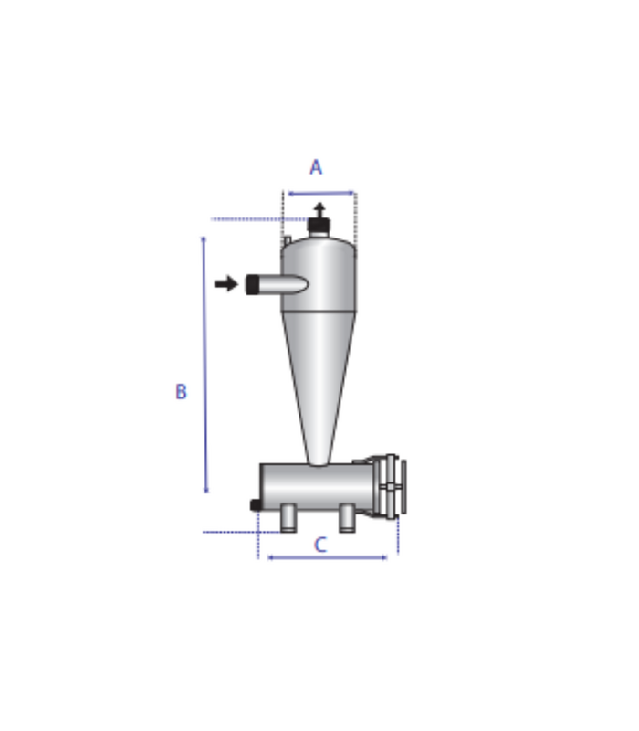 Il filtro idrociclone è un separatore di sabbia e di particelle inorganiche ad azione centrifuga. La particolare struttura dell’idrociclone crea un vortice d’acqua che permette la separazione delle particelle più pesanti per effetto della forza centrifuga. Le particelle solide separate dall’acqua vanno a depositarsi in una apposita vaschetta di raccolta dotata di una comoda apertura per essere facilmente svuotata.