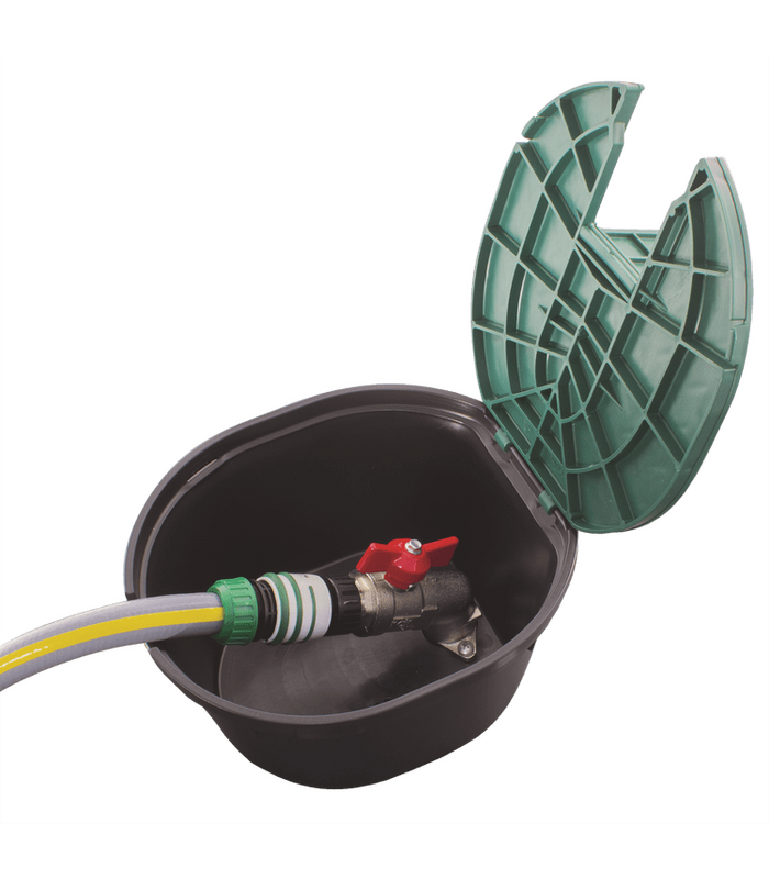 Il pozzetto con valvola è ideale per creare un punto di accesso alla linea idrica e per collegare una tubazione per l’irrigazione di superfice.