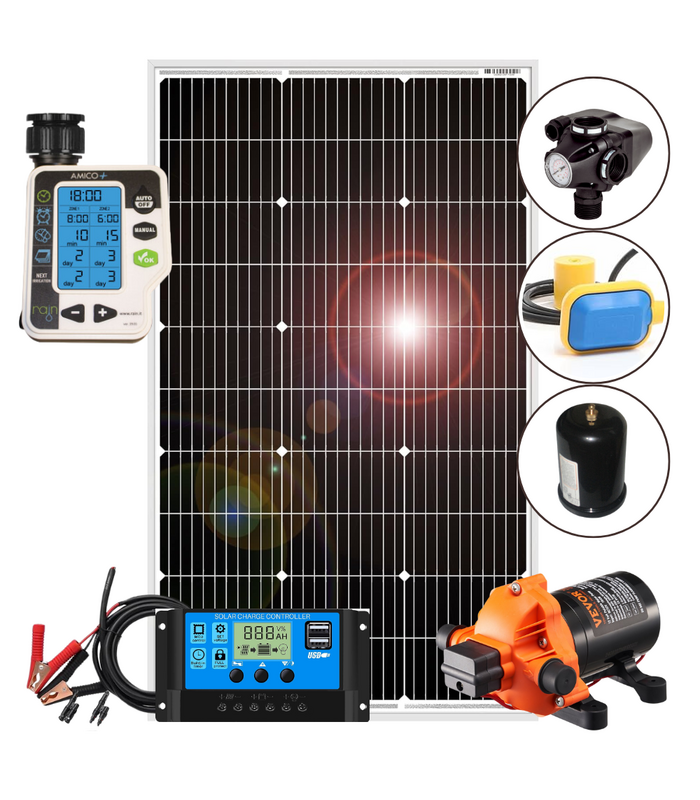 Il kit fotovoltaico automatico è particolarmente adatto per chi desidera realizzare un sistema di irrigazione completamente autonomo e isolato dalla rete elettrica.