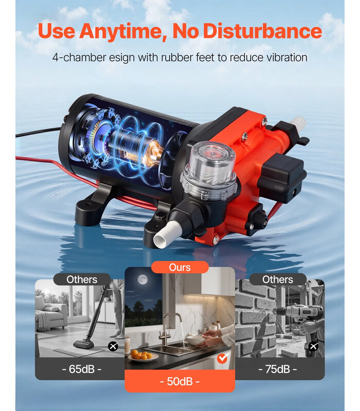 Ampiamente applicabile: La pompa a membrana è ideale per camper, roulotte, food truck all'aperto, irrigazione da giardino, irrigatori, cisterne per l'acqua piovana, ecc.