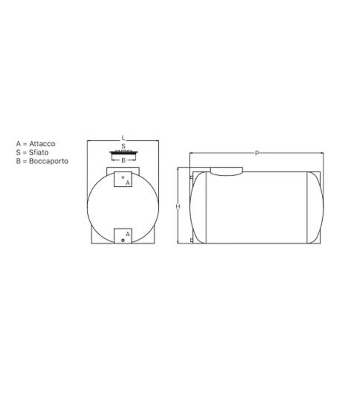 Contenitori cilindrici orizzontali autoportanti con un giusto rapporto diametro/altezza, parte superiore bombata con piccoli piani verticali per l’applicazione di gruppi di carico, boccaporto centrale completo di coperchio filettato.