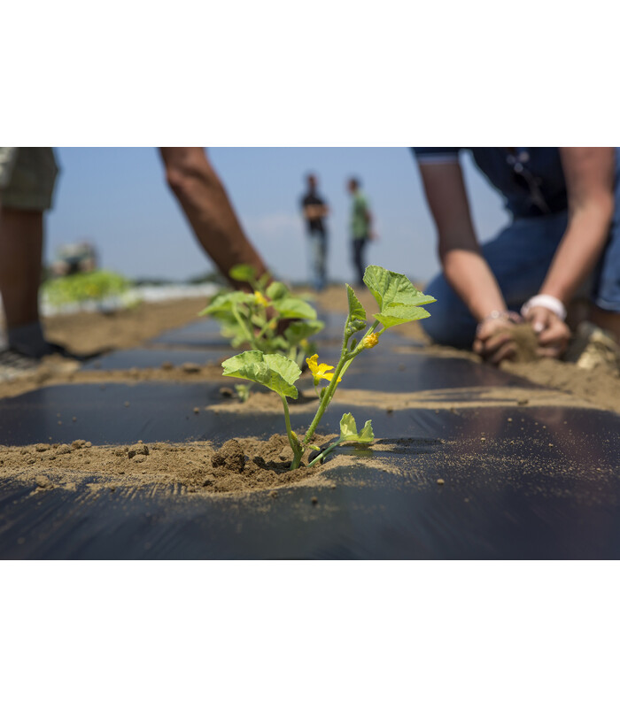 Il Film va steso sul terreno prima della semina o del trapianto ed è completamente impermeabile. L’irrigazione della coltura dovrà quindi essere effettuata utilizzando le apposite manichette forate da porre sotto il telo, e che verranno collegate al tubo di portata dell’acqua mediante l’apposito raccordo, mentre verranno chiuse all’altro capo semplicemente annodandole.